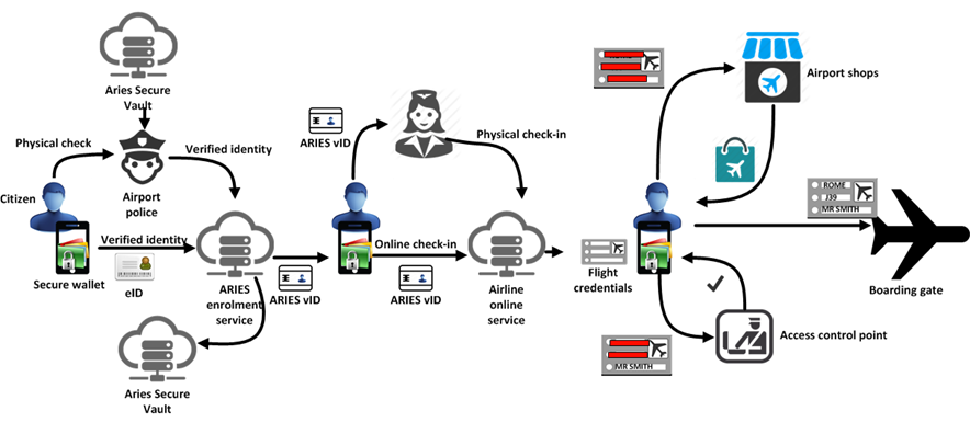 The identity virtualization scenario will be demonstranted in the context of an airport where there are several sub-scenarios that allow to test the level of security, usability and privacy achieved through ARIES.
